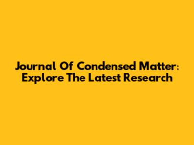 Journal Of Condensed Matter: Explore The Latest Research