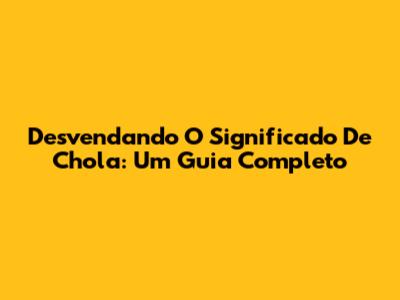 Desvendando O Significado De 'Chola': Um Guia Completo
