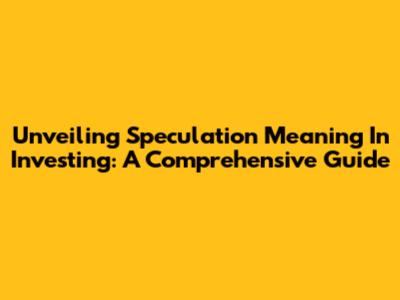 Unveiling Speculation Meaning In Investing: A Comprehensive Guide