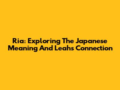 Ria: Exploring The Japanese Meaning And Leah's Connection