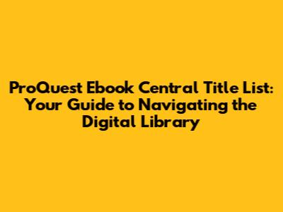 Hey guys! Are you ready to dive into the awesome world of ProQuest Ebook Central? If you're anything like me, you know how crucial it is to have access to a comprehensive and easily navigable title list. Whether you're a student, researcher, or just a bookworm looking for your next read, understanding how to effectively use the ProQuest Ebook Central title list can seriously level up your research game. Let's break it down and make sure you're getting the most out of this incredible resource.