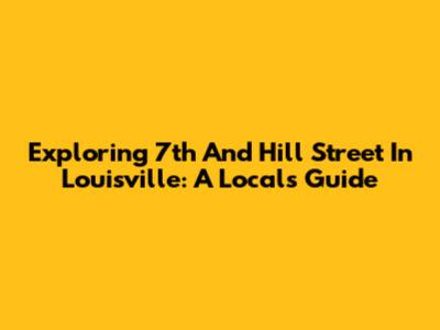 Exploring 7th And Hill Street In Louisville: A Local's Guide