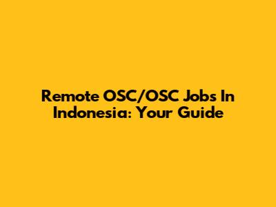 Remote OSC/OSC Jobs In Indonesia: Your Guide