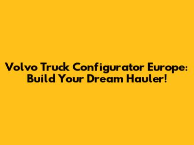 Volvo Truck Configurator Europe: Build Your Dream Hauler!