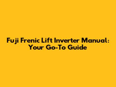 Fuji Frenic Lift Inverter Manual: Your Go-To Guide
