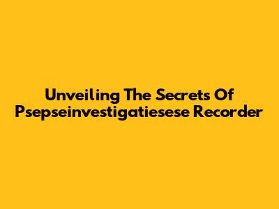 Unveiling The Secrets Of Psepseinvestigatiesese Recorder
