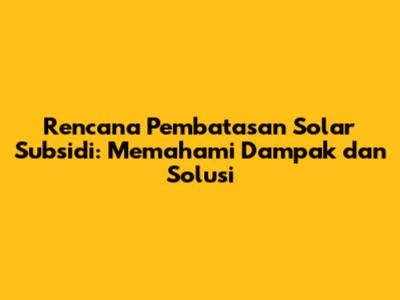 Rencana pembatasan solar subsidi, guys, merupakan topik yang lagi hangat diperbincangkan di Indonesia. Pemerintah berencana untuk membatasi penyaluran solar bersubsidi, dan ini tentu saja menimbulkan berbagai pertanyaan dan kekhawatiran di masyarakat. Dalam artikel ini, kita akan bedah secara mendalam tentang rencana ini, mulai dari alasan di baliknya, dampaknya bagi berbagai sektor, hingga solusi yang mungkin ditawarkan. Tujuannya, supaya kita semua bisa lebih memahami situasi ini dan mengambil langkah yang tepat.