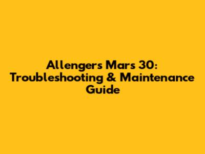 Allengers Mars 30: Troubleshooting & Maintenance Guide