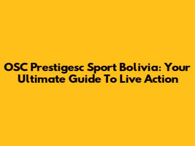 OSC Prestigesc Sport Bolivia: Your Ultimate Guide To Live Action