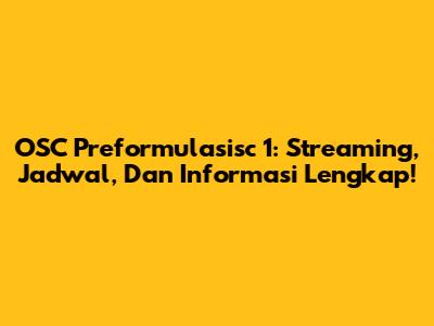 OSC Preformulasisc 1: Streaming, Jadwal, Dan Informasi Lengkap!
