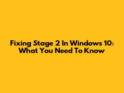 Fixing Stage 2 In Windows 10: What You Need To Know