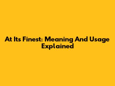 At Its Finest: Meaning And Usage Explained