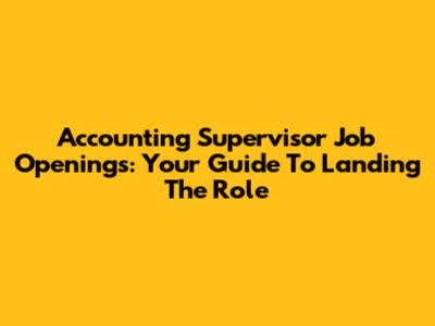 Accounting Supervisor Job Openings: Your Guide To Landing The Role