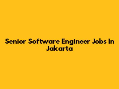 Senior Software Engineer Jobs In Jakarta