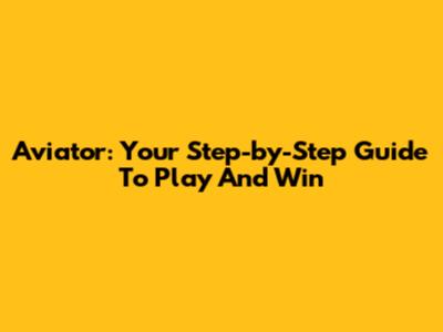 Aviator: Your Step-by-Step Guide To Play And Win