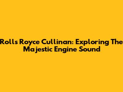 Rolls Royce Cullinan: Exploring The Majestic Engine Sound