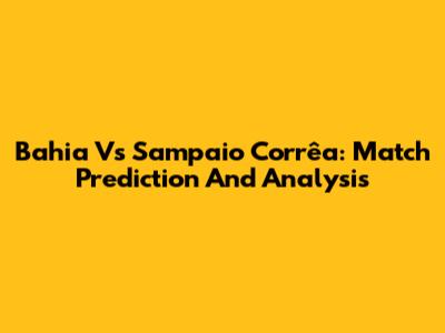 Bahia Vs Sampaio Corrêa: Match Prediction And Analysis