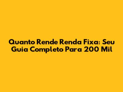 Quanto Rende Renda Fixa: Seu Guia Completo Para 200 Mil