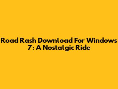 Road Rash Download For Windows 7: A Nostalgic Ride