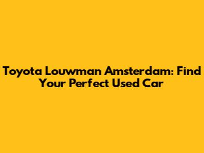 Toyota Louwman Amsterdam: Find Your Perfect Used Car