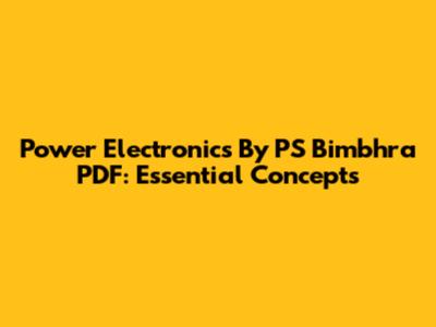 Power Electronics By PS Bimbhra PDF: Essential Concepts