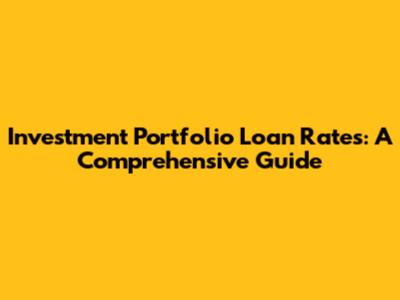 Investment Portfolio Loan Rates: A Comprehensive Guide