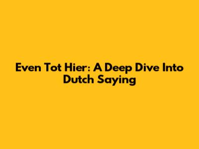 Even Tot Hier: A Deep Dive Into Dutch Saying