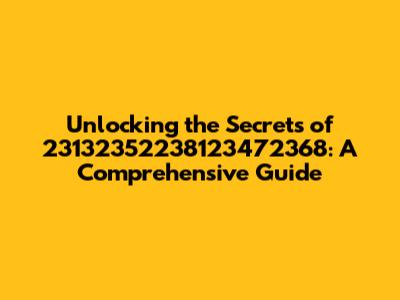 Okay, guys, let's dive deep into the enigmatic world of 23132352238123472368. You might be scratching your heads, wondering what this seemingly random string of numbers could possibly mean. Well, buckle up, because we're about to embark on a journey to unravel its mysteries. While it might appear to be just a jumble of digits, there's a good chance it represents something significant, whether it's a reference number, a unique identifier, or perhaps even a piece of a larger puzzle. Our mission today is to explore the various possibilities and shed some light on what this number could signify. First, we'll consider its potential origins and how it might have been generated. Then, we'll delve into practical strategies for deciphering its meaning, including online searches, database lookups, and even reaching out to experts in relevant fields. Remember, every digit, every sequence, could hold a vital clue! So, let’s get started and see if we can crack the code of 23132352238123472368 together.