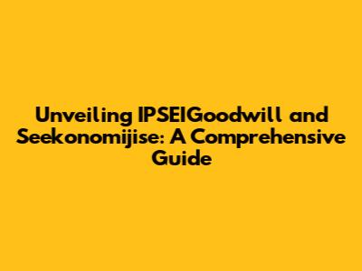 Hey guys, let's dive into something interesting – IPSEIGoodwill and Seekonomijise! These terms might sound a bit like secret codes, but trust me, they're super important in understanding how some organizations operate. We're going to break down what they mean, why they matter, and how they work in the real world. Get ready for a deep dive that'll help you navigate the often complex world of business and finance.
