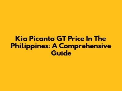Kia Picanto GT Price In The Philippines: A Comprehensive Guide